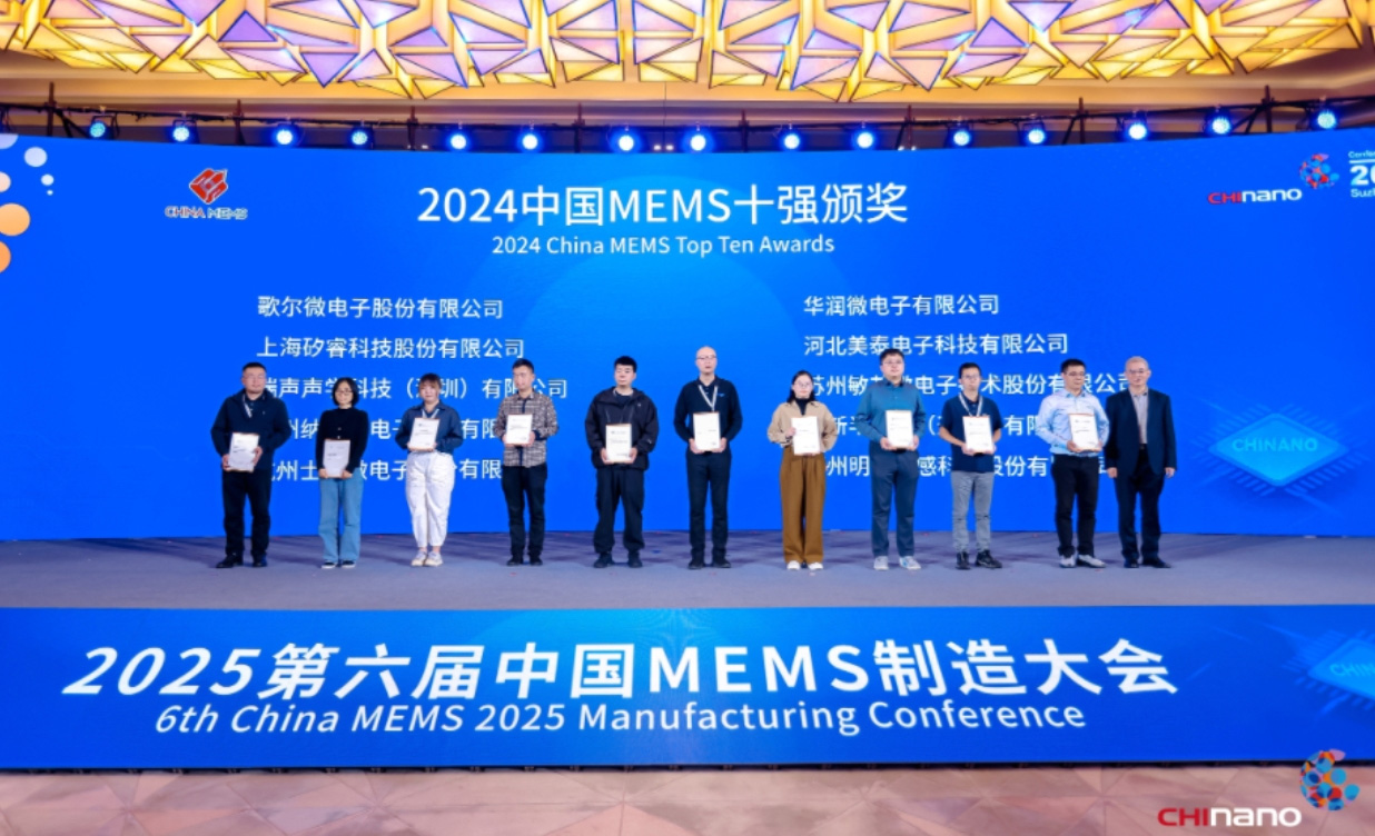 近日,2025第六屆中國 MEMS 制造大會公布了“2024 年中國MEMS 十強企業”名單,歌爾微以榜首成績再度入選。